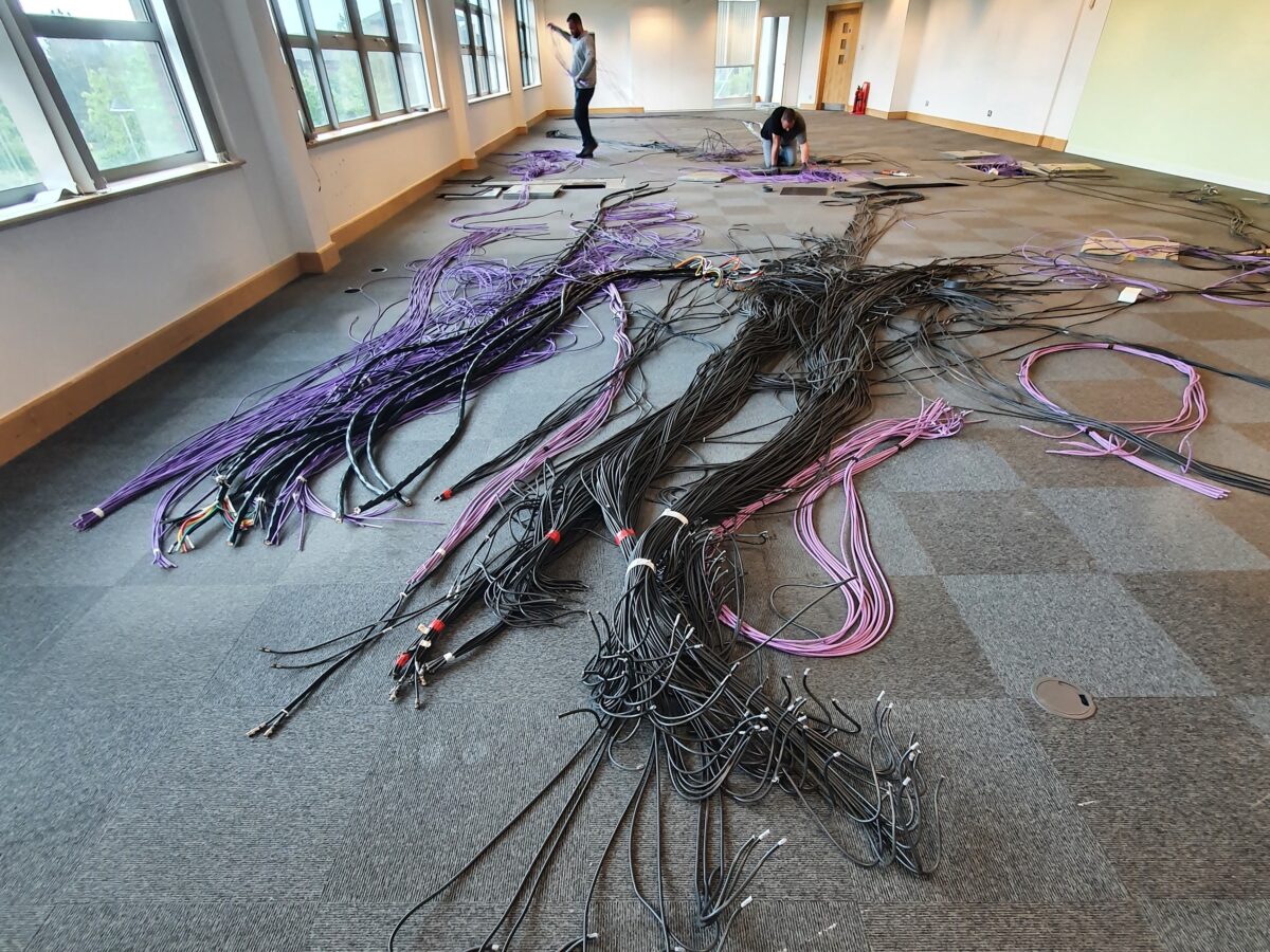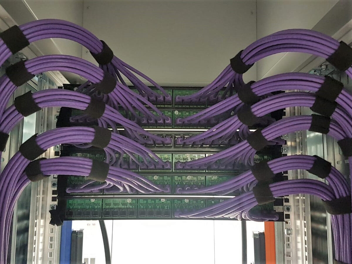 Pre-cabling prior to the installation of hardware, using pre-made bespoke looms to reduce downtime and ensure accurate patching.